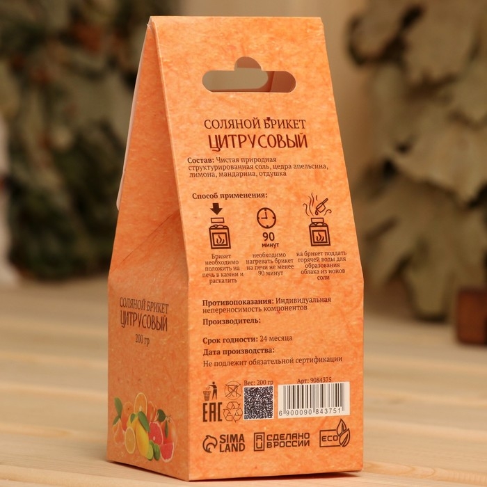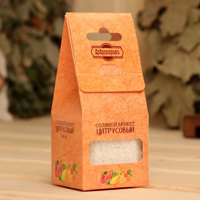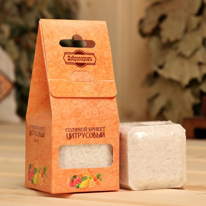 Соляной брикет куб "Цитрусовый" 200 г "Добропаровъ" апельсин, лимон, мандарин