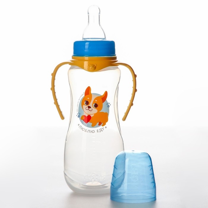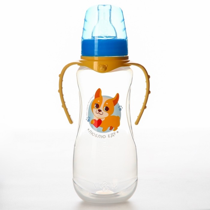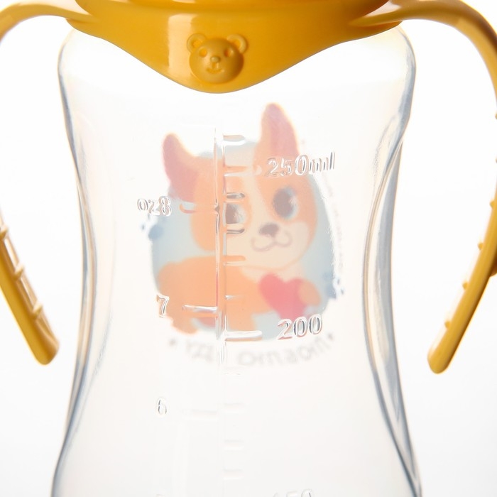 Бутылочка для кормления «Собачка Лу», классическое горло, 250 мл., от 0 мес., приталенная, с ручками