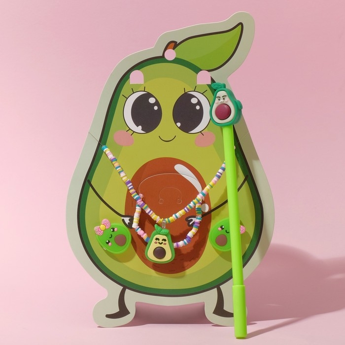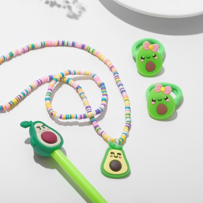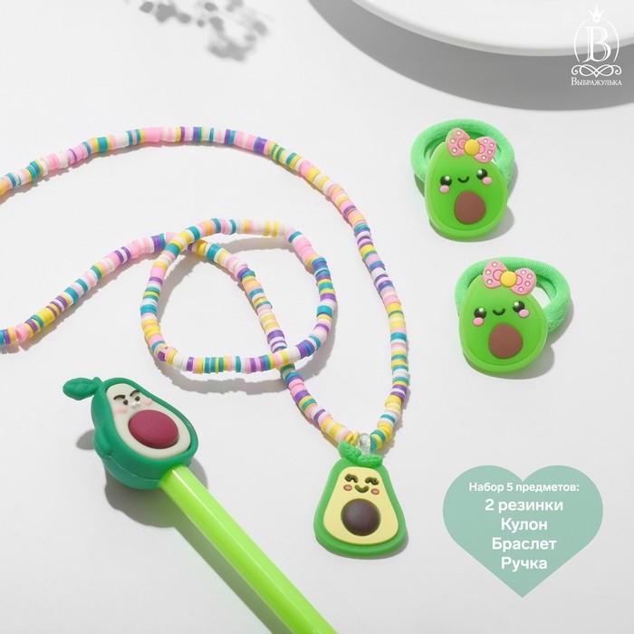 Набор детский «Выбражулька» 5 предметов: 2 резинки, кулон, браслет, ручка, авокадо, цветной