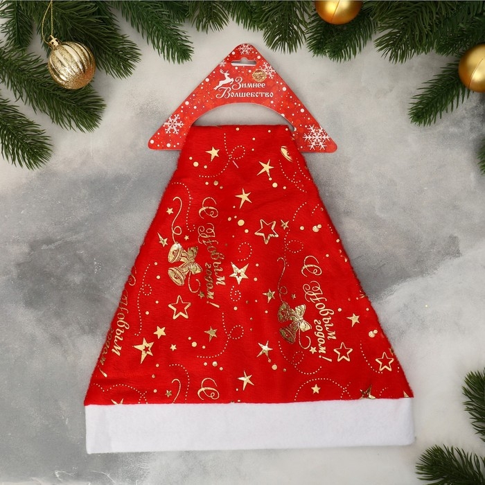 Колпак новогодний "Колокольчики, звёзды, бусы" 29х37 см, красный