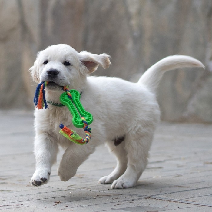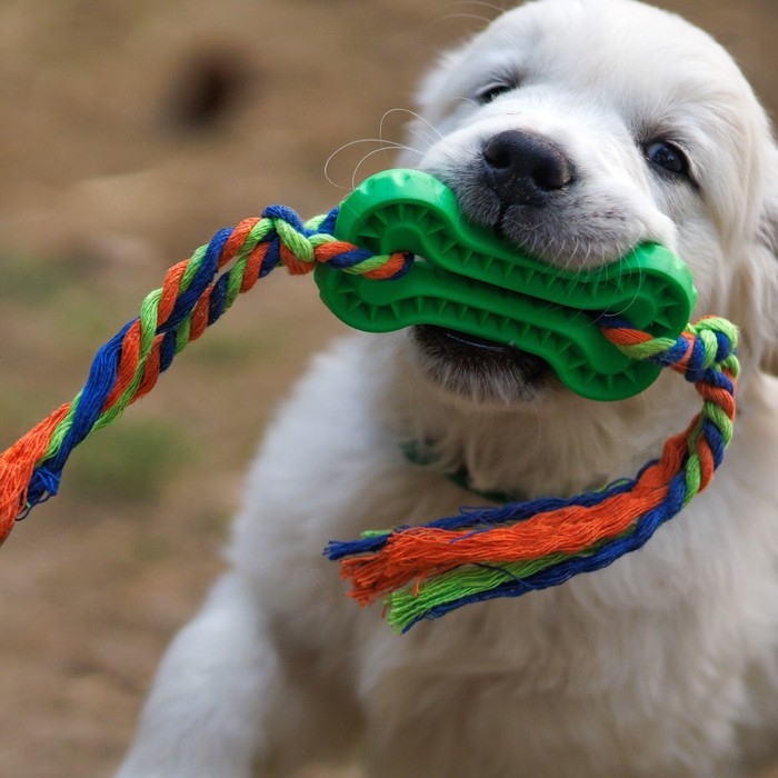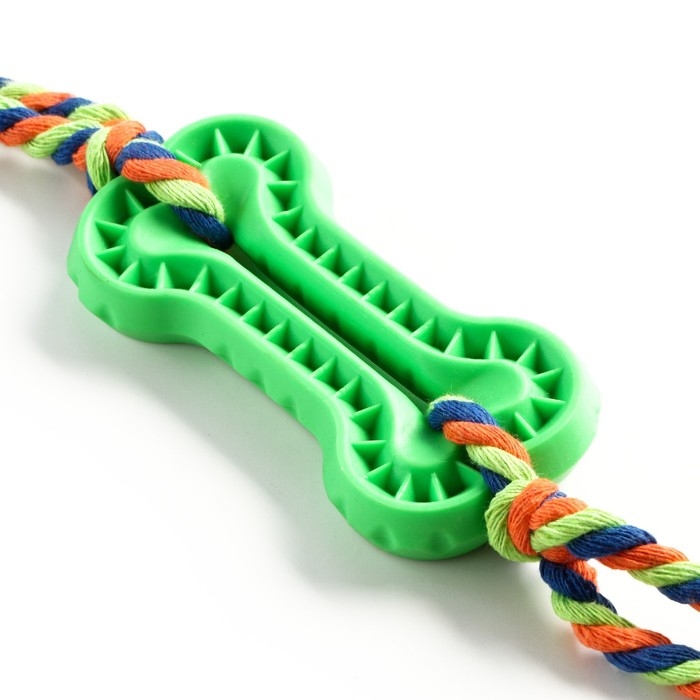 Одна из самых популярных и любимых собачьих игрушек — косточка с канатом. Еще бы! Его можно грызть, тянуть или подкидывать. Поэтому развивающая игрушка костока с канатом Чистые клыки - это незаменимая игрушка для активного и жизнеродстного четвероного друга. Поверхность косточки массажирует десны, снимает зубной налет. Регулярное использование таких игрушек снижает образование камня. Также способствует развитию челюстного аппарата. Резиновая косточка крепится на канате из хлопка. Игрушка идеальна для игр с участием хозяина и без него. С такой игрушкой питомцы любят играть даже тогда, когда вас нет дома. Игрушка абсолютно безопасна для собак и подойдёт собакам любых пород и размеров. Косточка не имеет мелких деталей и легко отгрызаемых частичек. Он изготовлен из термопластичной резины (не имеет неприятных запахов), которая уступает по крепости зубам собак и не повреждает их. Вам и вашему питомцу обязательно понравится эта игрушка, ведь она очень прочная и прослужит Вам очень долго!