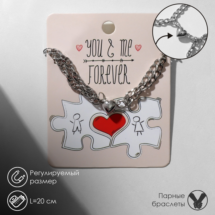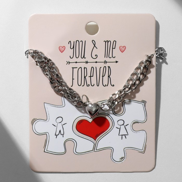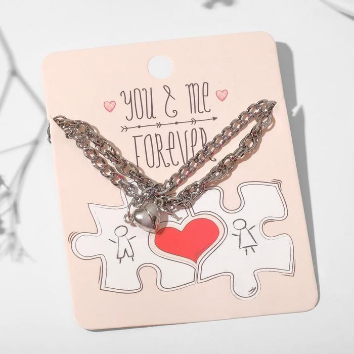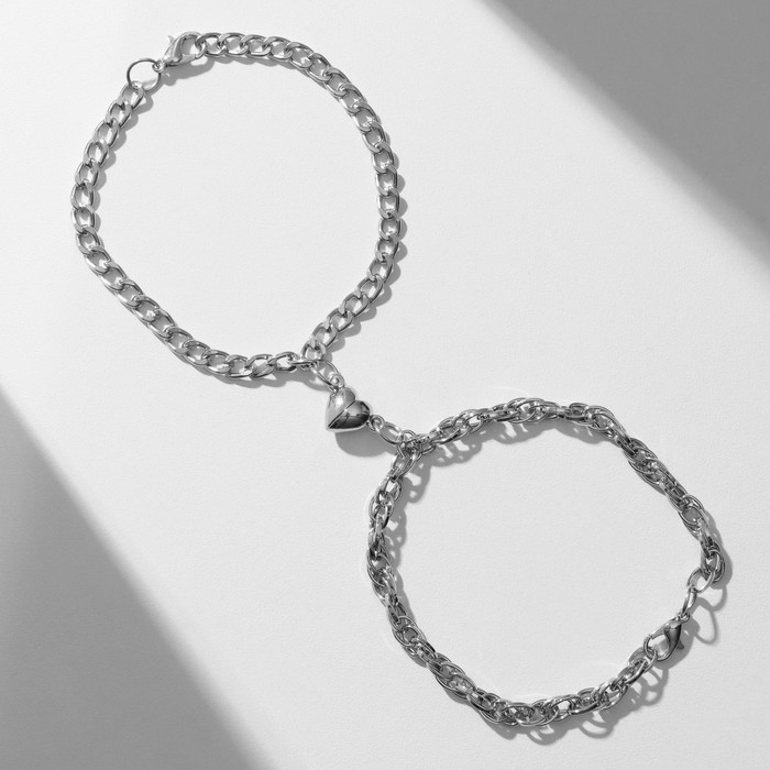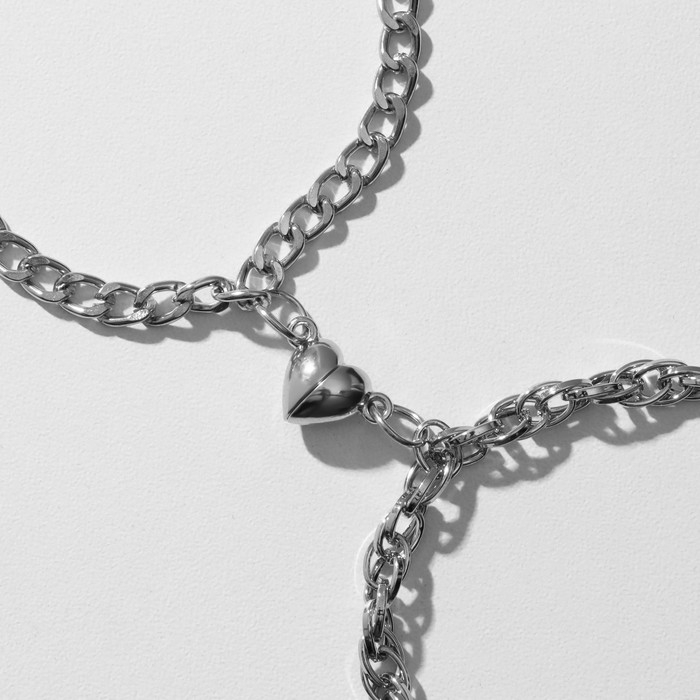 Браслеты «Неразлучники» на магните, сердечко, цвет серебро, 20 размер