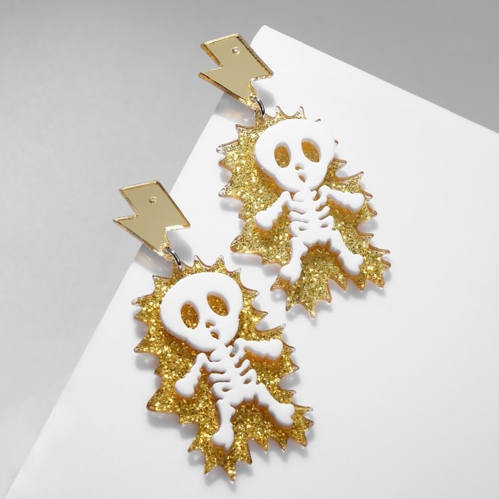 Серьги акрил «Скелет» удар молнии, цвет белый в золоте
