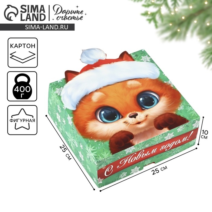 Подарочная коробка новогодняя складная «С новым годом», 25 х 25 х 10 см, Новый год