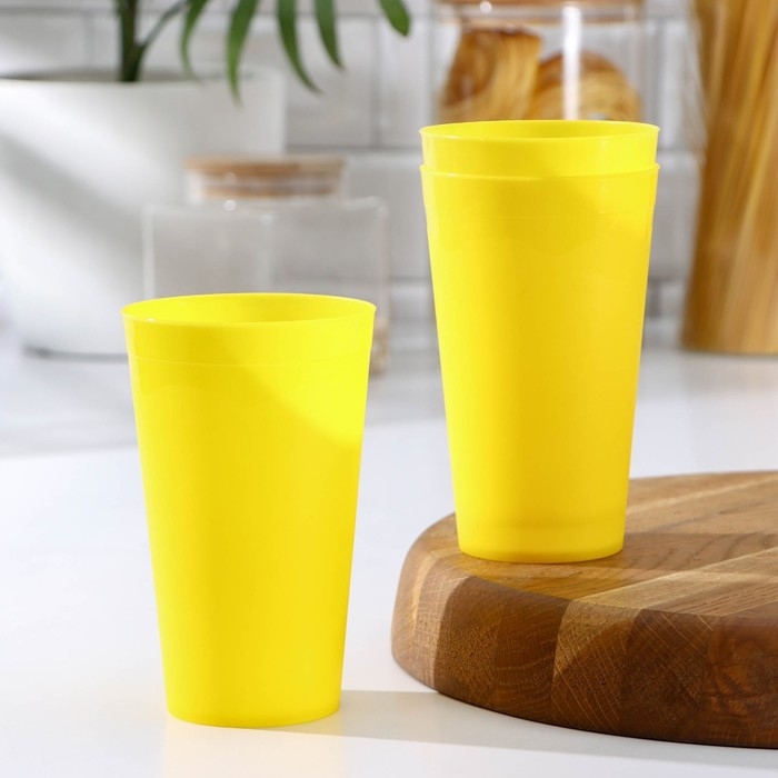 Набор пластиковых стаканов, 3 шт, 400 мл, цвет жёлтый
