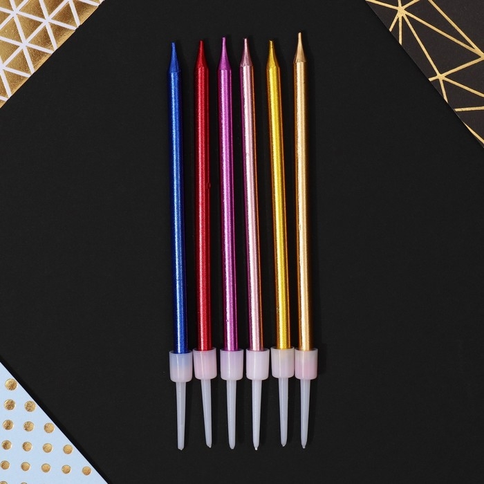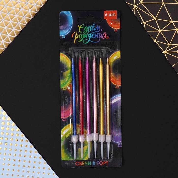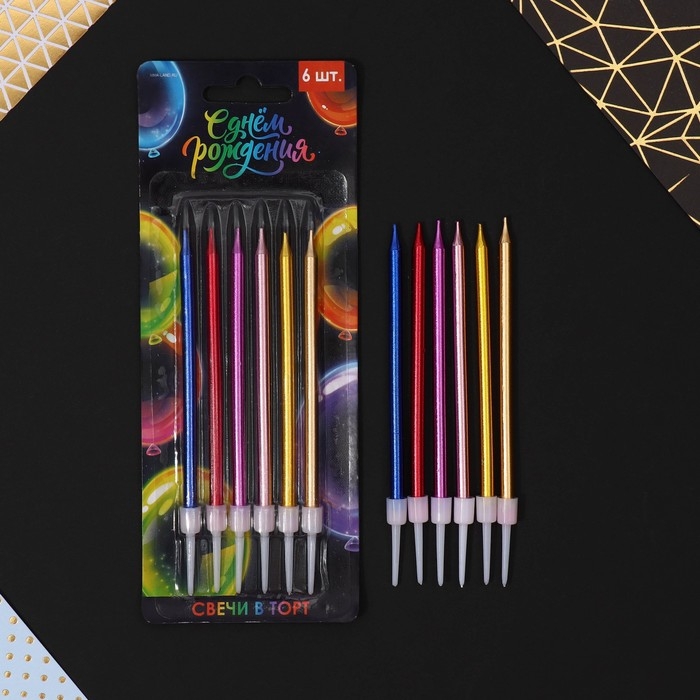 Свечи для торта «С днем рождения», цветные, 6 шт., 12,5 х 0,5 см