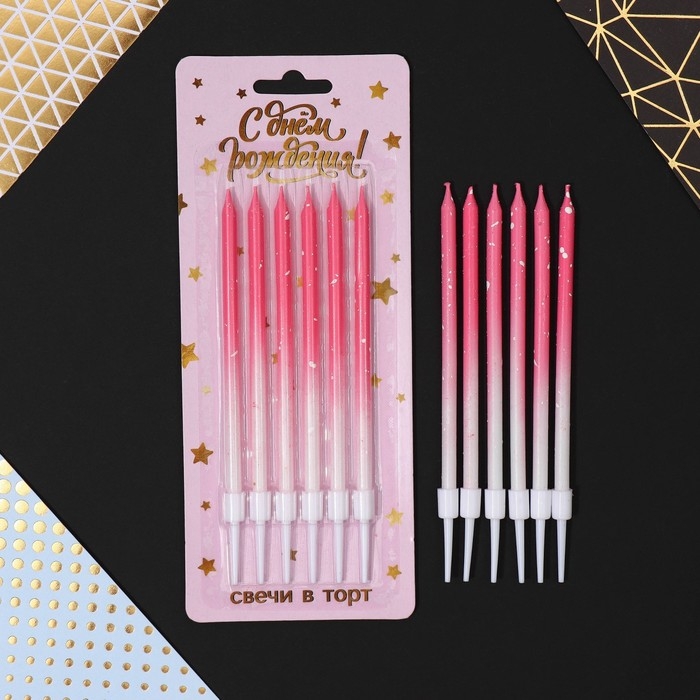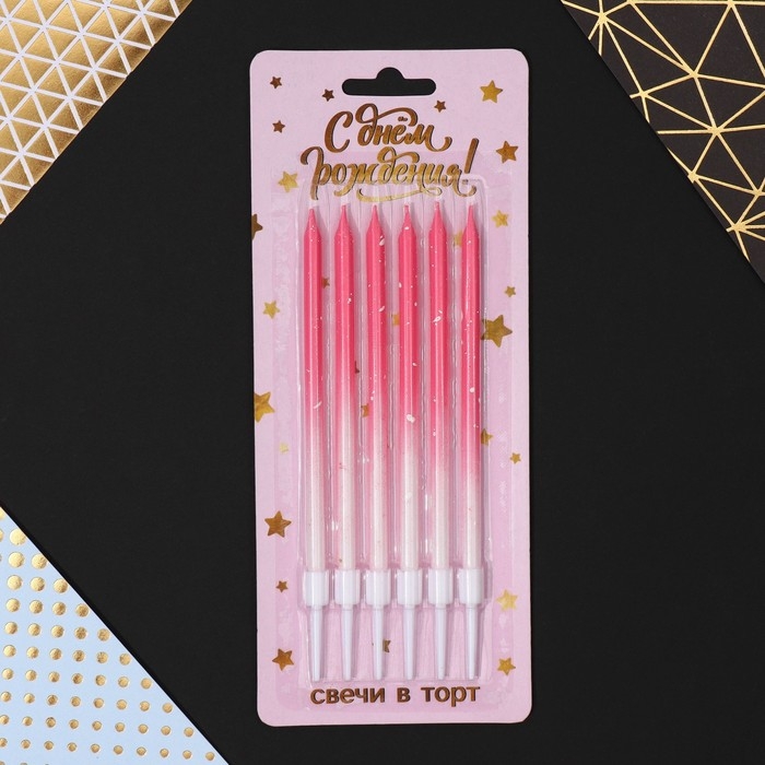 Свечи для торта с блестками, розовый, 6 шт., 13 х 0,4 см