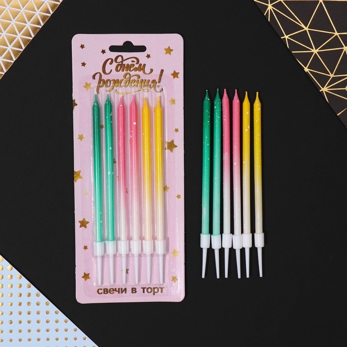 Свечи для торта с блестками, разноцветные, 6 шт., 13 х 0,4 см