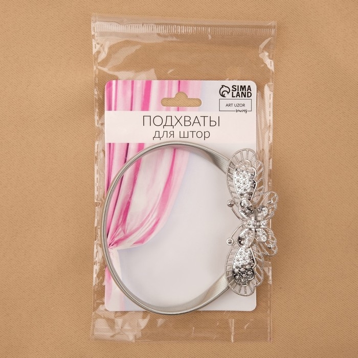 Подхват для штор «Бабочка», 9 × 3 см, 23,5 см, цвет серебряный