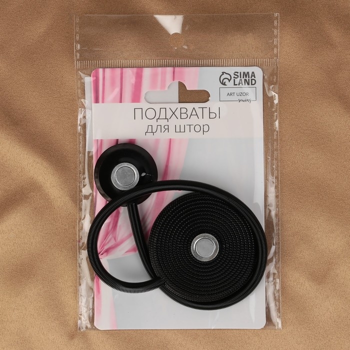 Подхват для штор «Вязаный круг», на пружине, d = 6/3,5 см, 23,5 см, цвет чёрный