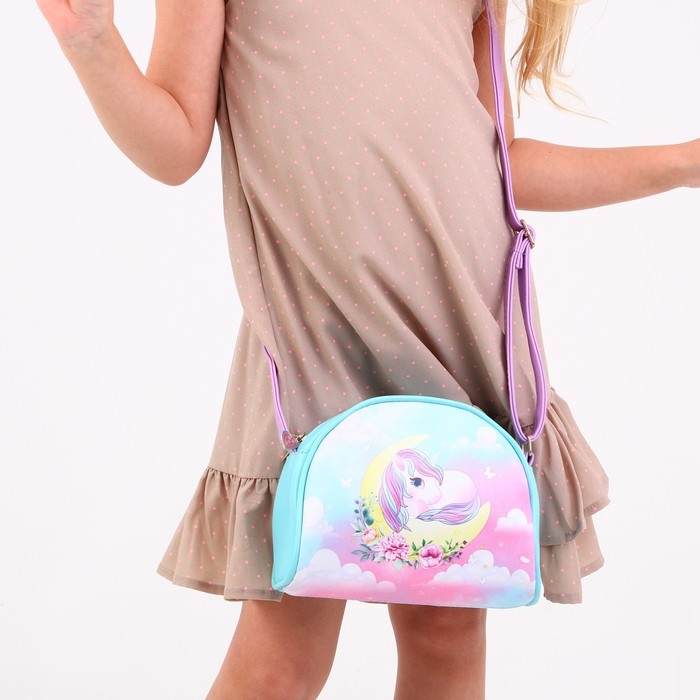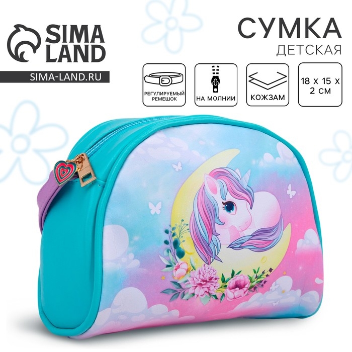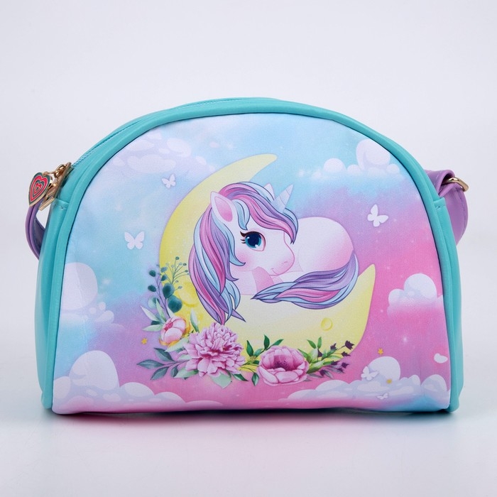 Сумка детская "Единорог на луне", искусственная кожа, с брелком, 18х15х2 см