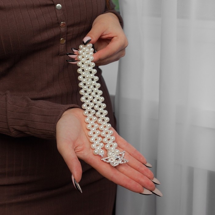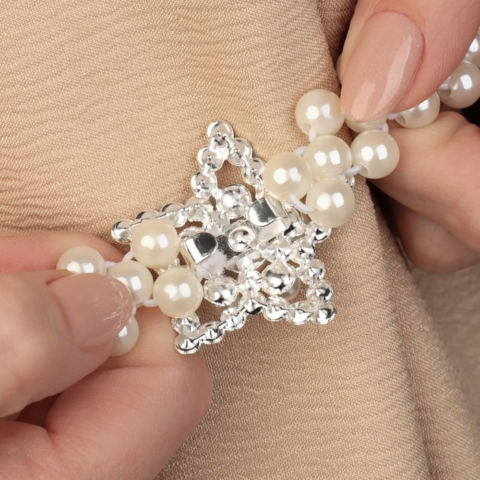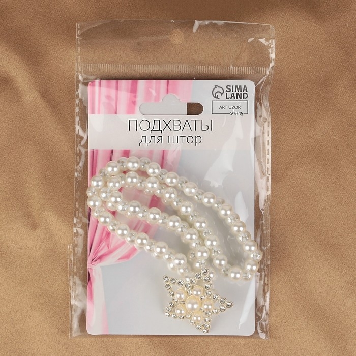 Подхват для штор «Звезда», жемчуг на резинке, d = 4 см, 2 × 43 см, цвет белый