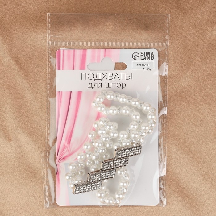 Подхват для штор «Геометрия», жемчуг на резинке, 2,2 × 7,5 см, 2 × 45 см, цвет белый