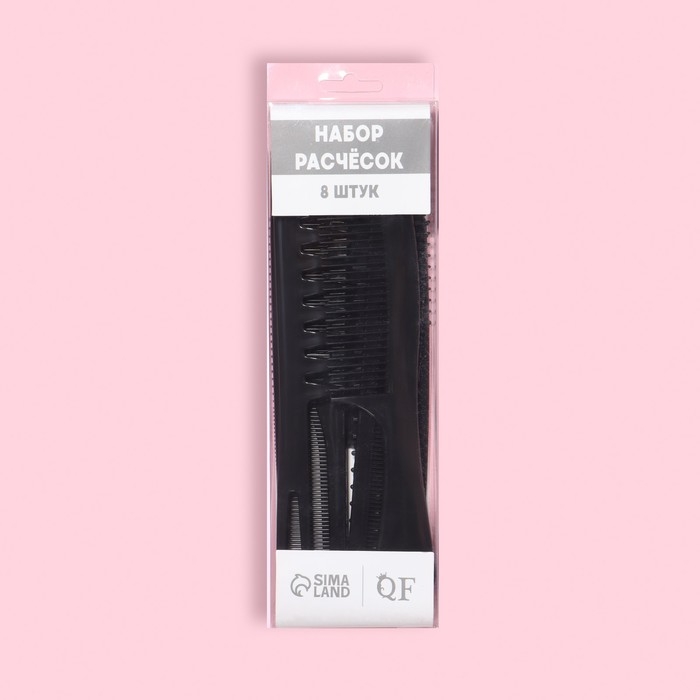 Набор расчёсок, 10 предметов, в чехле, цвет чёрный