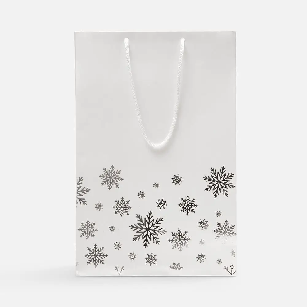 Пакет из бумаги Galaxy Metallic (TPG) плотностью 120 г/м² с тиснением серебристой фольгой.Выдерживает вес до 2 кг.