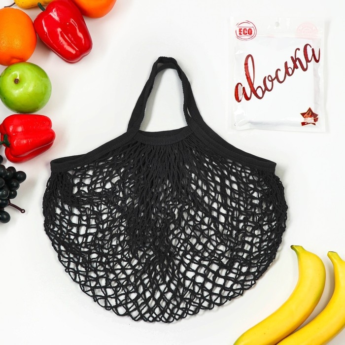 Авоська плетёная сумка сетка 34 х 34 см, ручка 12 см, клетка 1.5 см, чёрная
