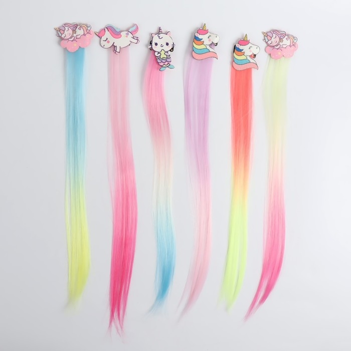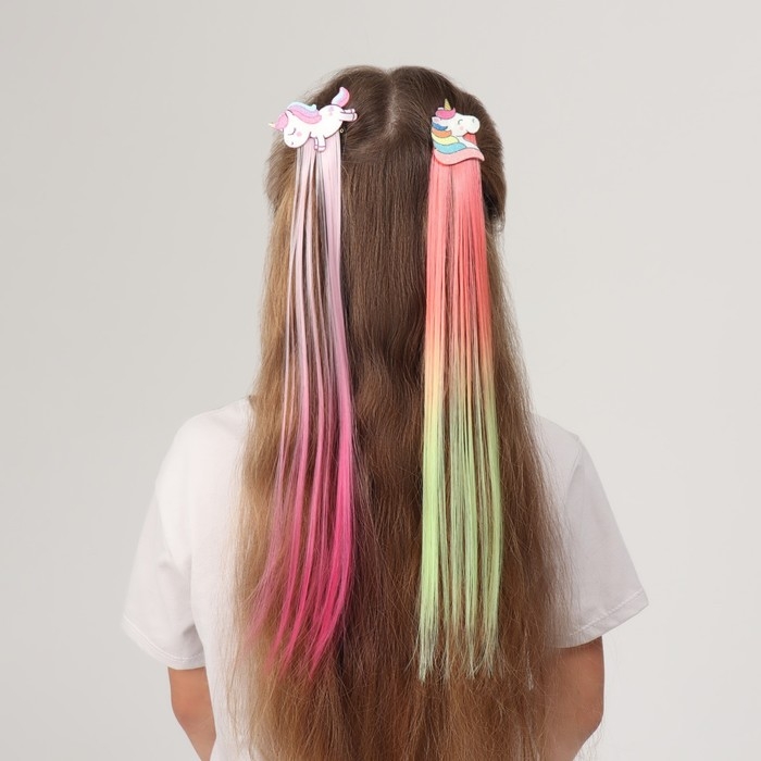 Локон накладной «Единорог», прямой волос, на заколке, 40 см, цвет МИКС