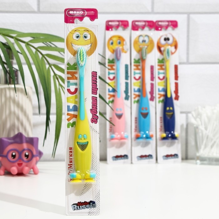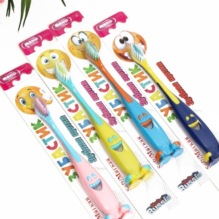 Детская зубная щетка на присоске «Мишка», с защитным колпачком (нейлон), цвет МИКС