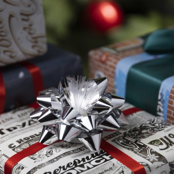 Светодиодная игрушка «Бант-звезда» 9 × 6 × 9 см, батарейки LR44х3 (в комплекте), свечение мульти, серебристая