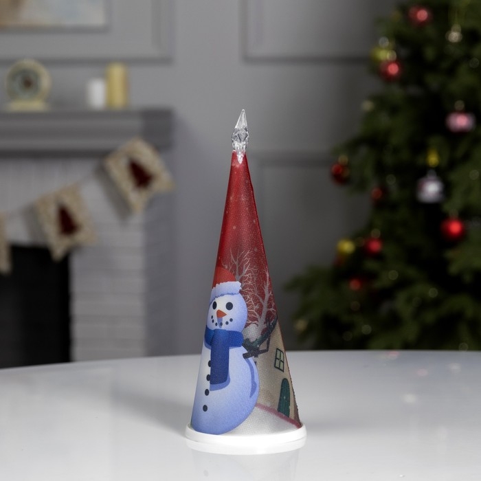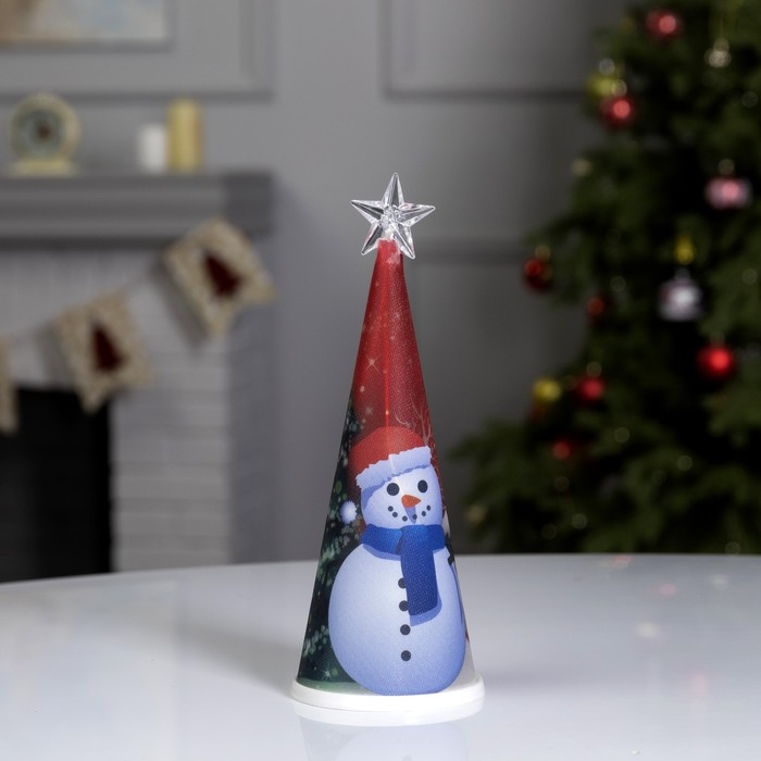 Светодиодная фигура «Ёлка со снеговиком» 7.5 × 21 × 7.5 см, пластик, батарейки CR2032х1 (в комплекте), свечение мульти