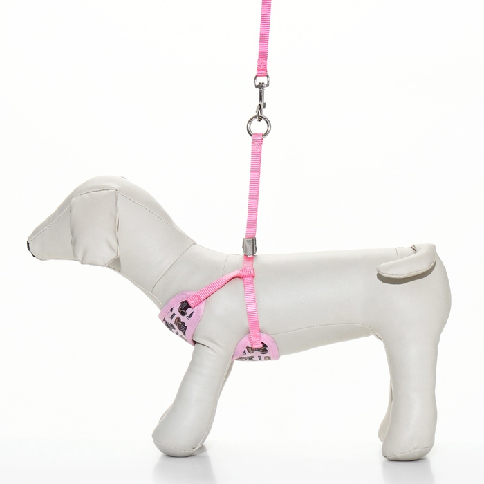 Комплект с мягкой шлейкой "Дэймон", размер S, поводок 120 х 1 см, розовый