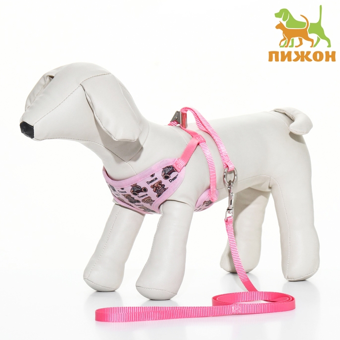 Комплект с мягкой шлейкой "Дэймон", размер М, поводок 120 х 1,2 см, розовый