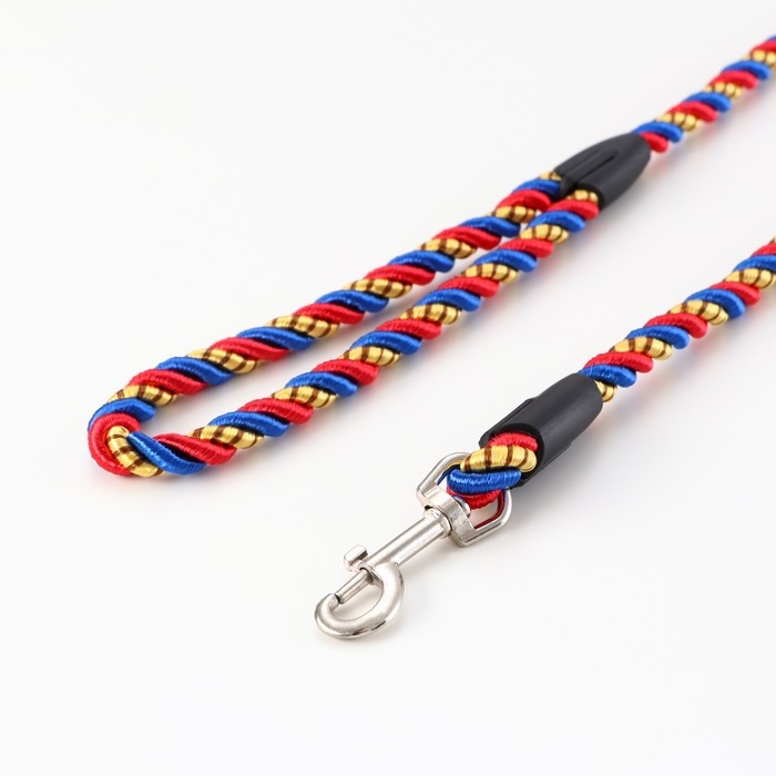 Поводок круглый "Скрутка", 1 х 120 см, сине-красно-жёлтый