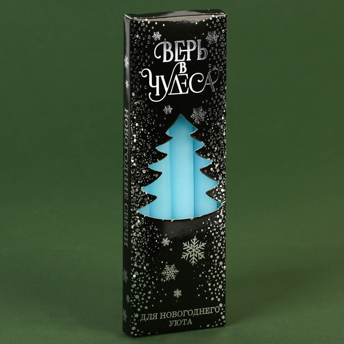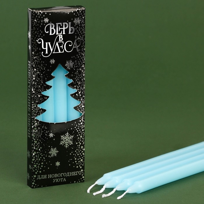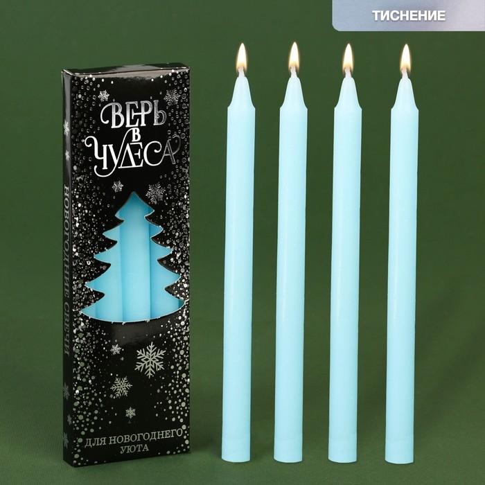 Новогодние восковые свечи «Новый год: Верь в чудеса», набор 4 шт., голубые, 15 х 1 х 1 см.