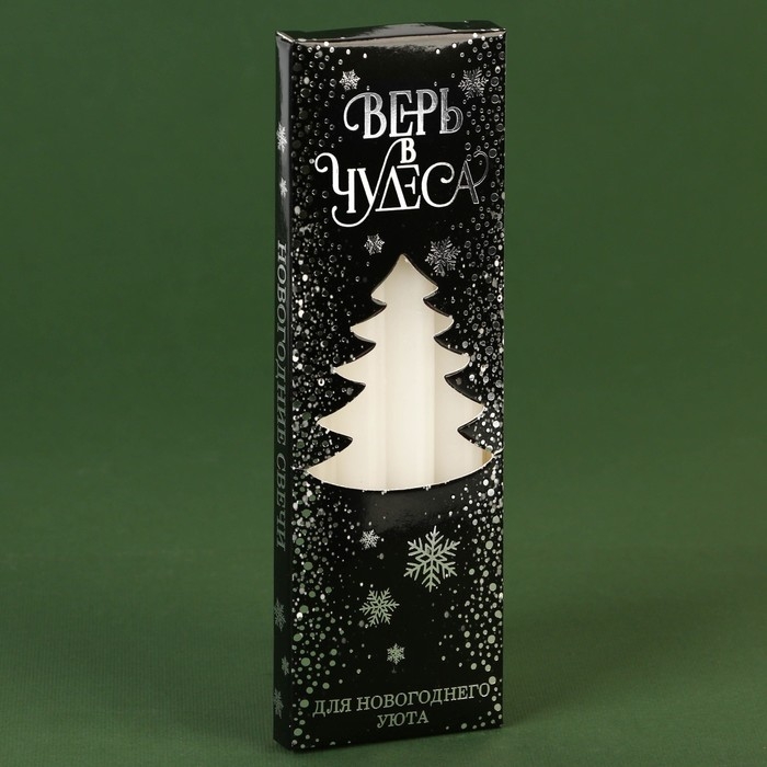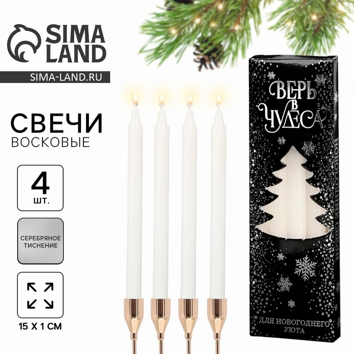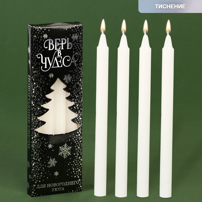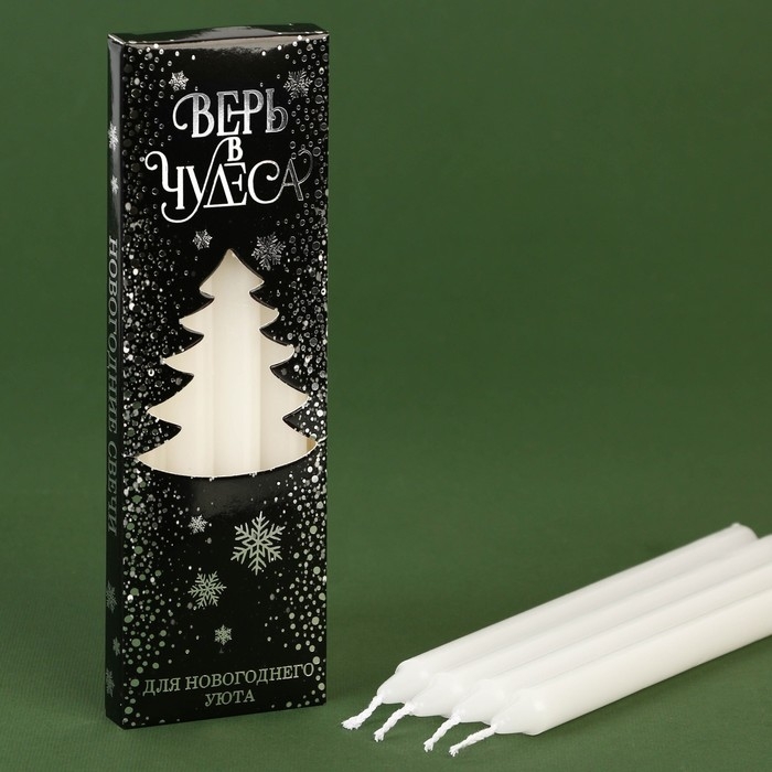 Набор восковых свечей новогодний «Верь в чудеса», на Новый год, 4 шт., белые, 15 х 1 х 1 см.