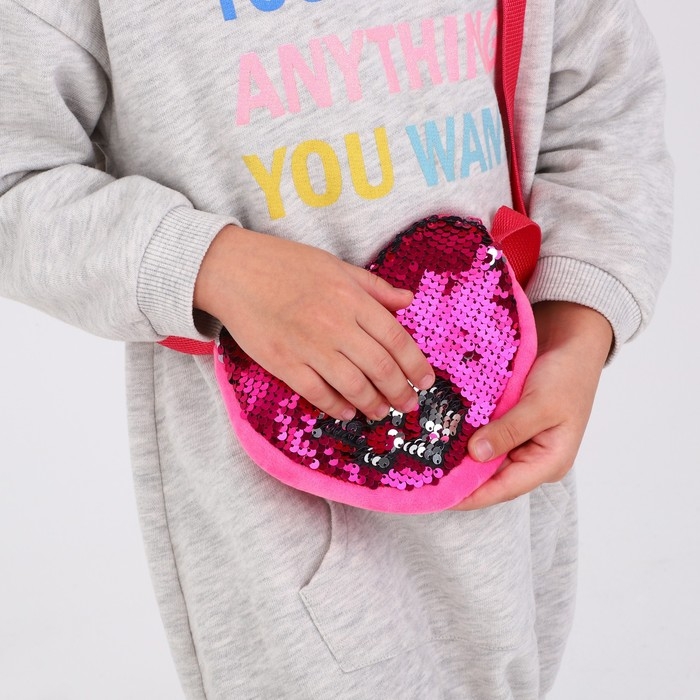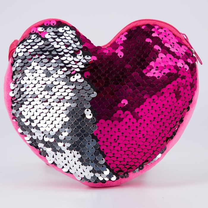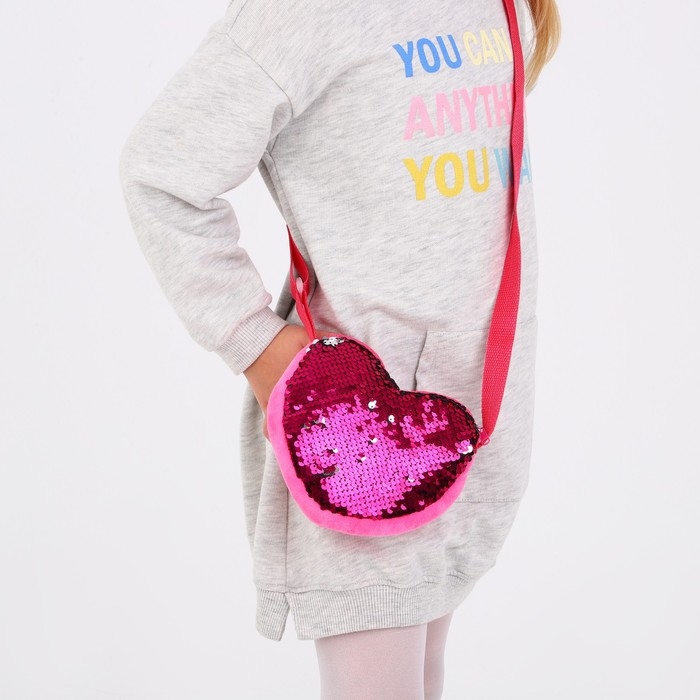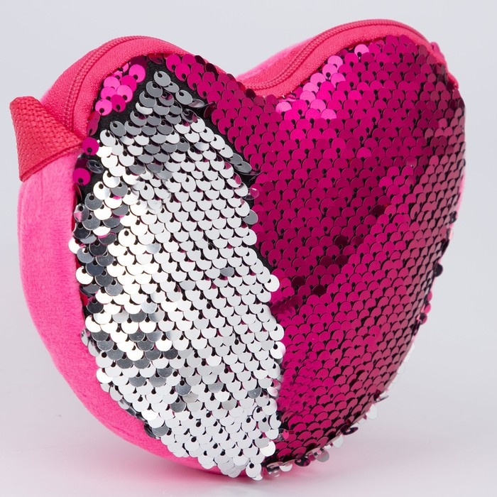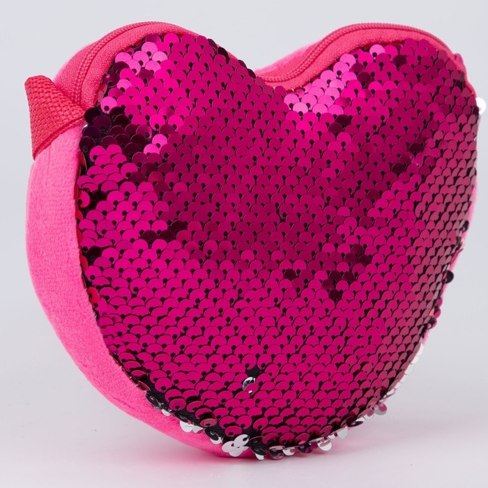 Сумка детская для девочки, с пайетками, сердце, 17 х 15 х 1 см, цвет ярко- розовый