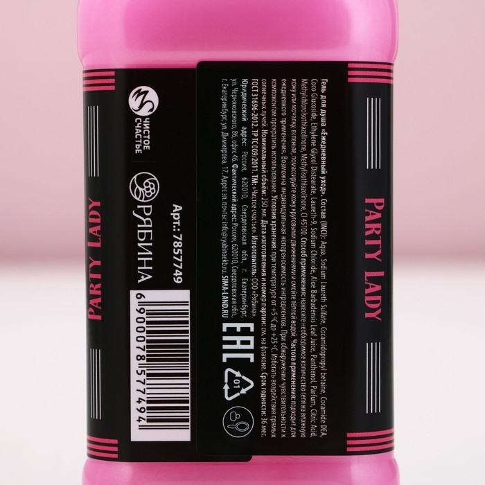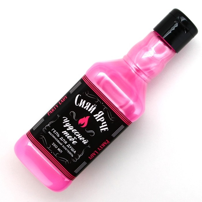 Гель для душа во флаконе виски Party Lady, 250 мл, аромат малинового коктейля, Новый Год