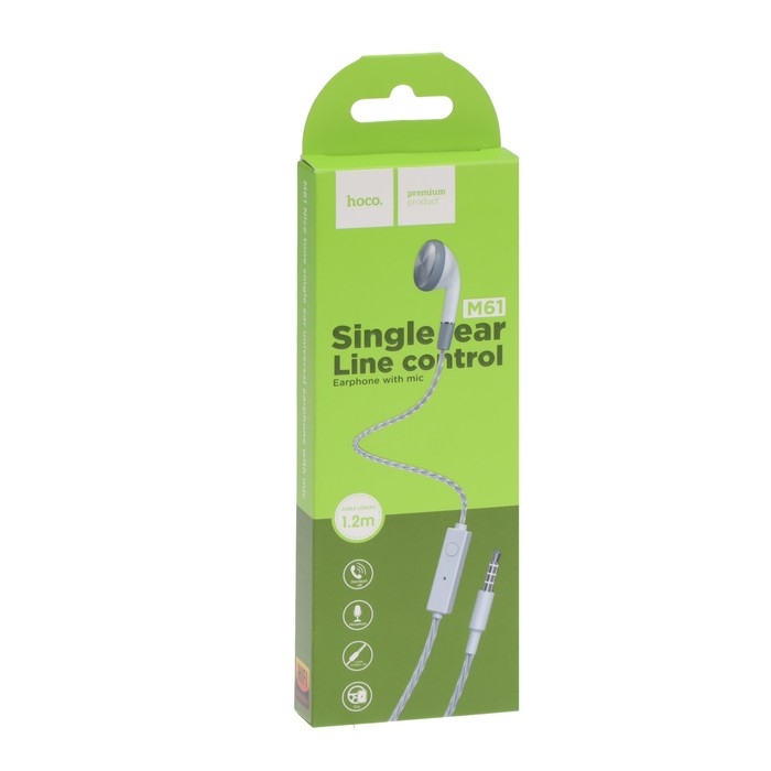 Наушник Hoco M61, проводные, вкладыш, микрофон, Jack 3.5 мм, 1.2 м, белый