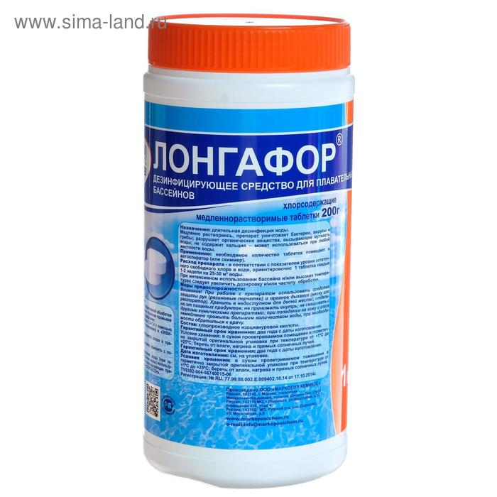 Дезинфицирующее средство "Лонгафор", таблетки 200 г, для воды в бассейне, 1 кг