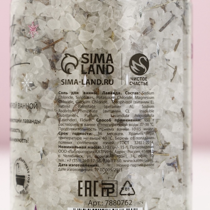 Соль для ванны с лепестками лаванды «С Новым Годом!», 370 г, ЧИСТОЕ СЧАСТЬЕ