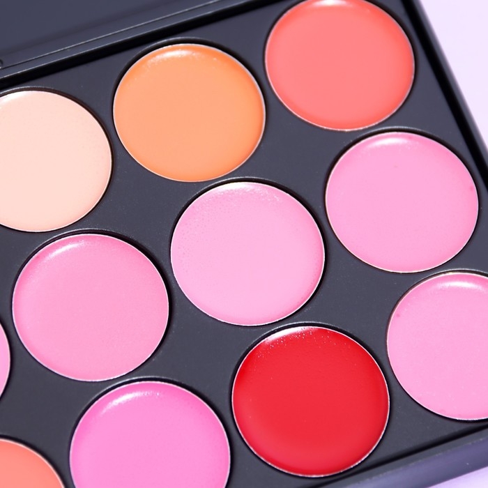 Палитра с блеском для губ содержит 15 различных оттенков цвета. С такой палеткой можно подобрать оттенок помады к любому образу, под любой оттенок платья. Блеск можно смешивать между собой. Подойдет для визажистов, палитра поможет подобрать цвет блеска под любой оттенок кожи. Подойдет для личного использования - поэкспериментируйте с разными цветами, создавайте новые образы всего лишь меняя цвет. Много цветов - много образов без необходимости покупать всё штучно, что существенно экономит бюджет. Палетку удобно брать с собой, не занимает много места. В палитре представлены самые современные оттенки цветов.