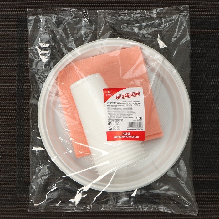 Набор одноразовой посуды на 6 персон Не ЗАБЫЛИ! «Красавчик», цвет белый