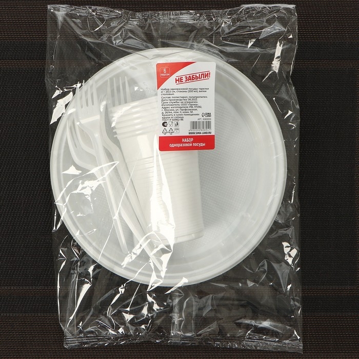 Набор пластиковой одноразовой посуды на 6 персон Не ЗАБЫЛИ! «Биг-Пак №2», цвет белый