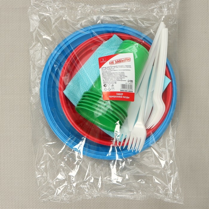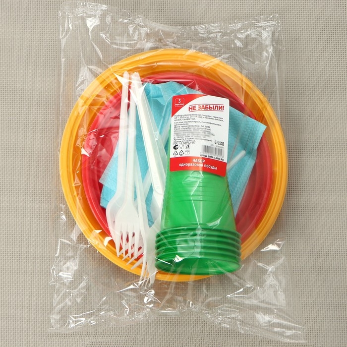 Набор пластиковой одноразовой посуды на 3 персоны Не ЗАБЫЛИ! «Светофор», цвет МИКС