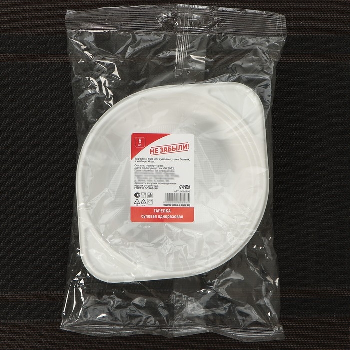 Набор пластиковых одноразовых тарелок Не ЗАБЫЛИ!, 500 мл, суповые, цвет белый, в наборе 6 шт