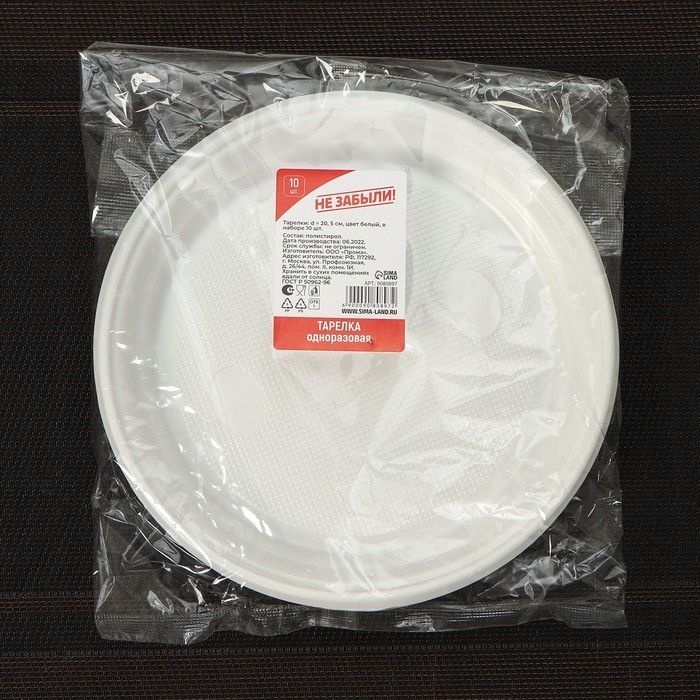 Набор пласиковых одноразовых тарелок, d=20,5 см, цвет белый, в наборе 10 шт