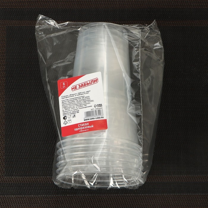 Набор пластиковых одноразовых стаканов Не ЗАБЫЛИ! «Факел», 500 мл, цвет прозрачный, в наборе 6 шт