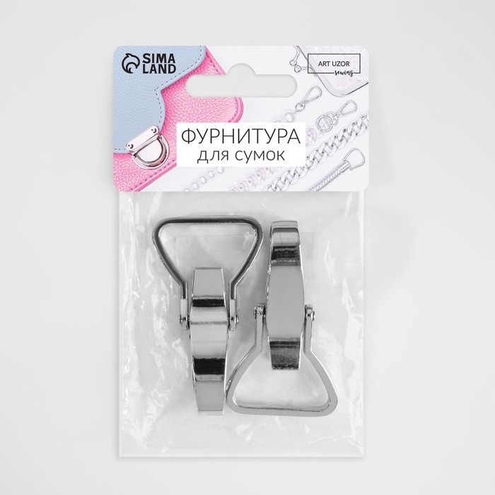 Карабин металлический, 55 × 35 мм / 26 × 3,5 мм, 2 шт, цвет серебряный