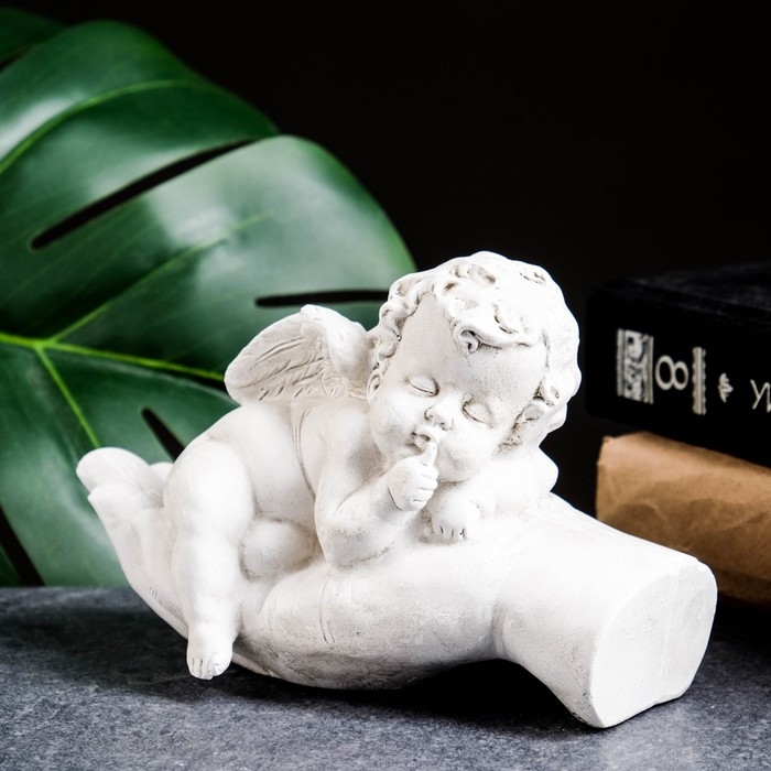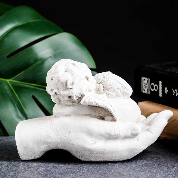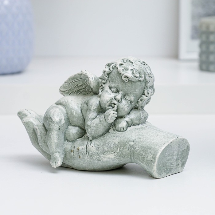 Фигура "Ангелочек на ладони спит" состаренный, 16х10х8см