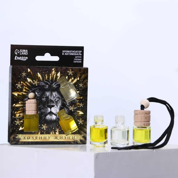 Ароматизаторы в машину новогодние «Хозяину жизни» на Новый год, цитрус, тропики, парфюм (набор 3 шт)