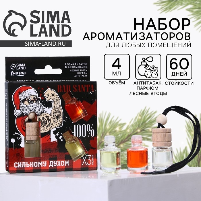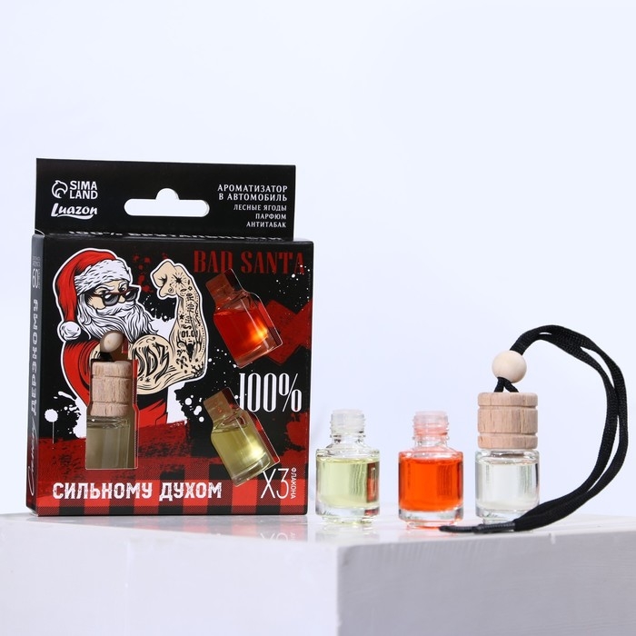 Ароматизаторы в машину новогодние «Сильному духом» на Новый год, антитабак, парфюм, лесные ягоды (набор 3 шт)