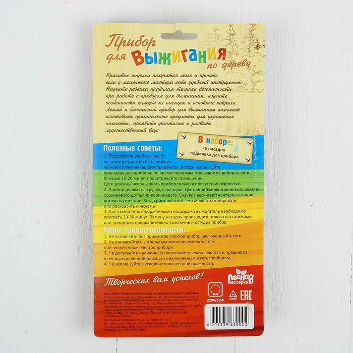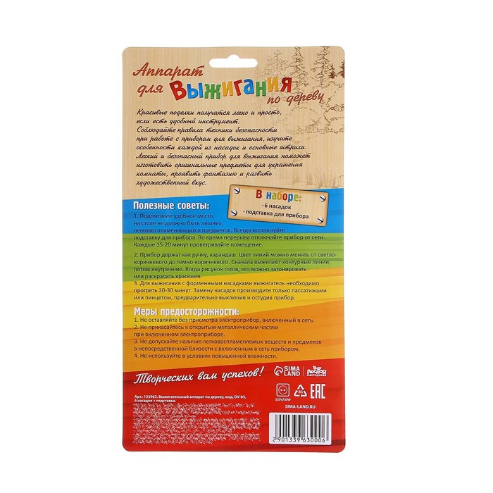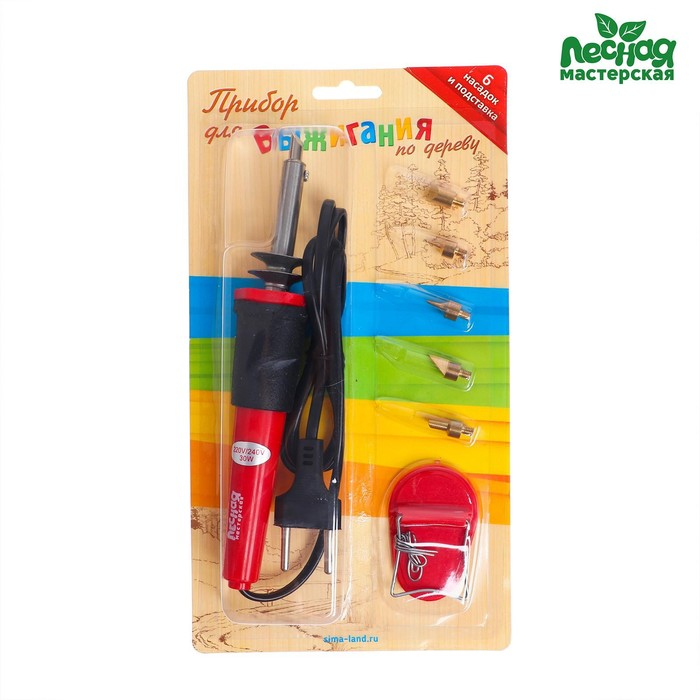 Выжигательный аппарат по дереву, набор: 6 насадок, подставка