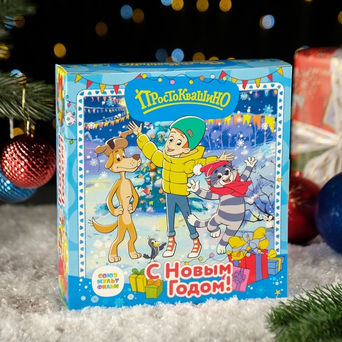 Новый год. Коробка подарочная складная "Книга Простоквашино" 21 х 6 х 22 см.