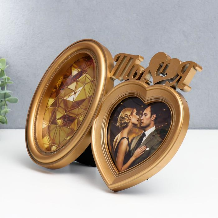 Фоторамка пластик на 2 фото 10х10, 10х15 см "Ты и я" тёмное золото 18,5х27х2 см
