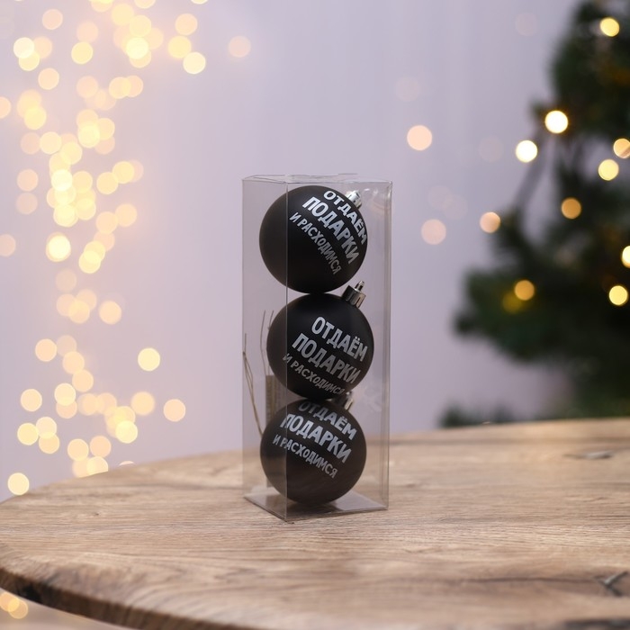 Шары ёлочные новогодние «Отдаём подарки и расходимся», на Новый год, пластик, d=6, 3 шт., цвет чёрный