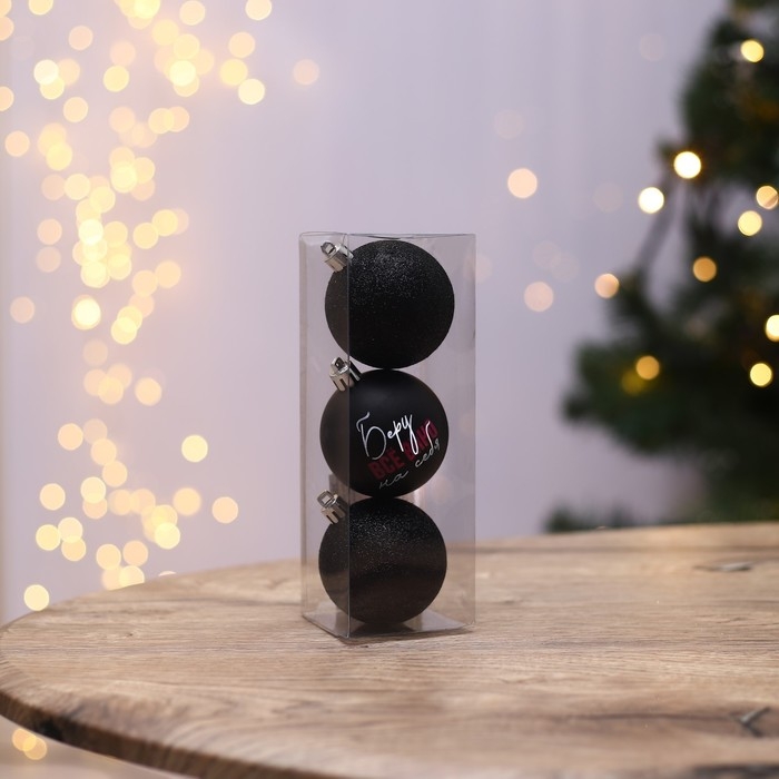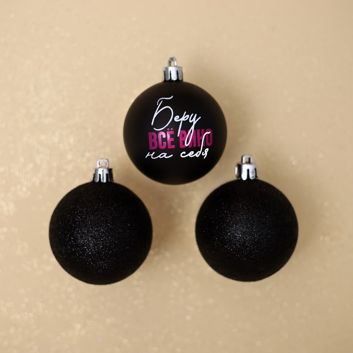 Шары ёлочные новогодние «Беру все вино на себя», на Новый год, пластик, d=6, 3 шт., цвет чёрный